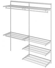 Базовый комплект гардеробной системы GS - это готовое решение для квартиры, дачи, гаража, обеспечивающее удобное хранение вещей. Система собирается в 6 разных конфигурациях, что позволяет подстраивать ее под размеры помещения и ориентироваться на личные пожелания по расположению отдельных элементов. В комплект входят несущие рельсы и навесные направляющие, полки, штанги, аксессуары, крепежные элементы. Можно докупить множество дополнительных компонентов для гардеробной системы.