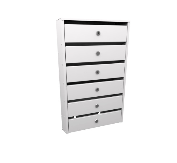 Узкие 6-и секционные почтовые ящики для подъездов многоквартирных домов серии «Сигма» с задней стенкой. Корреспонденция располагается в секции под углом 25 градусов.