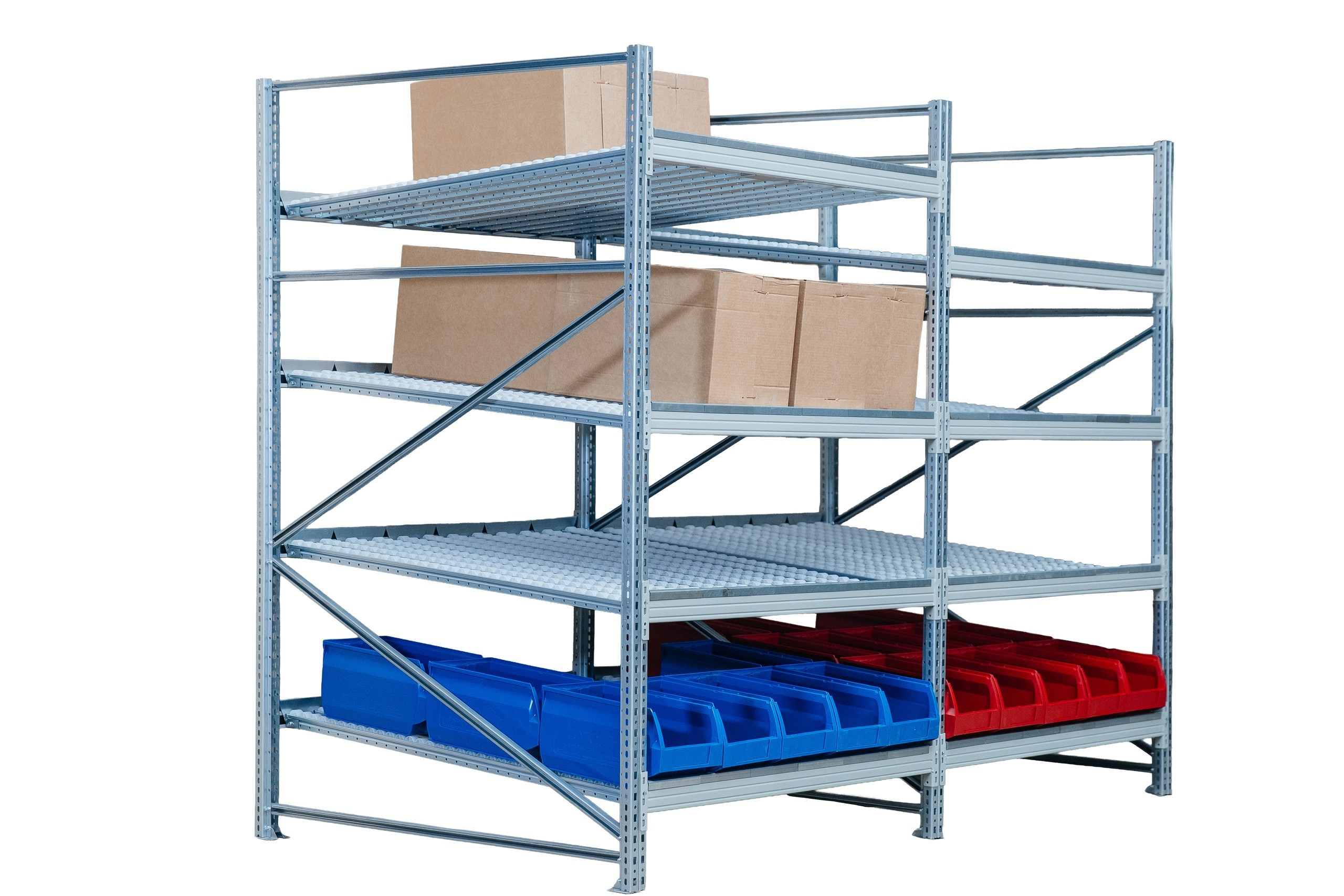 Гравитационные полки с разделителями — интеграция в палетные стеллажи любого типа