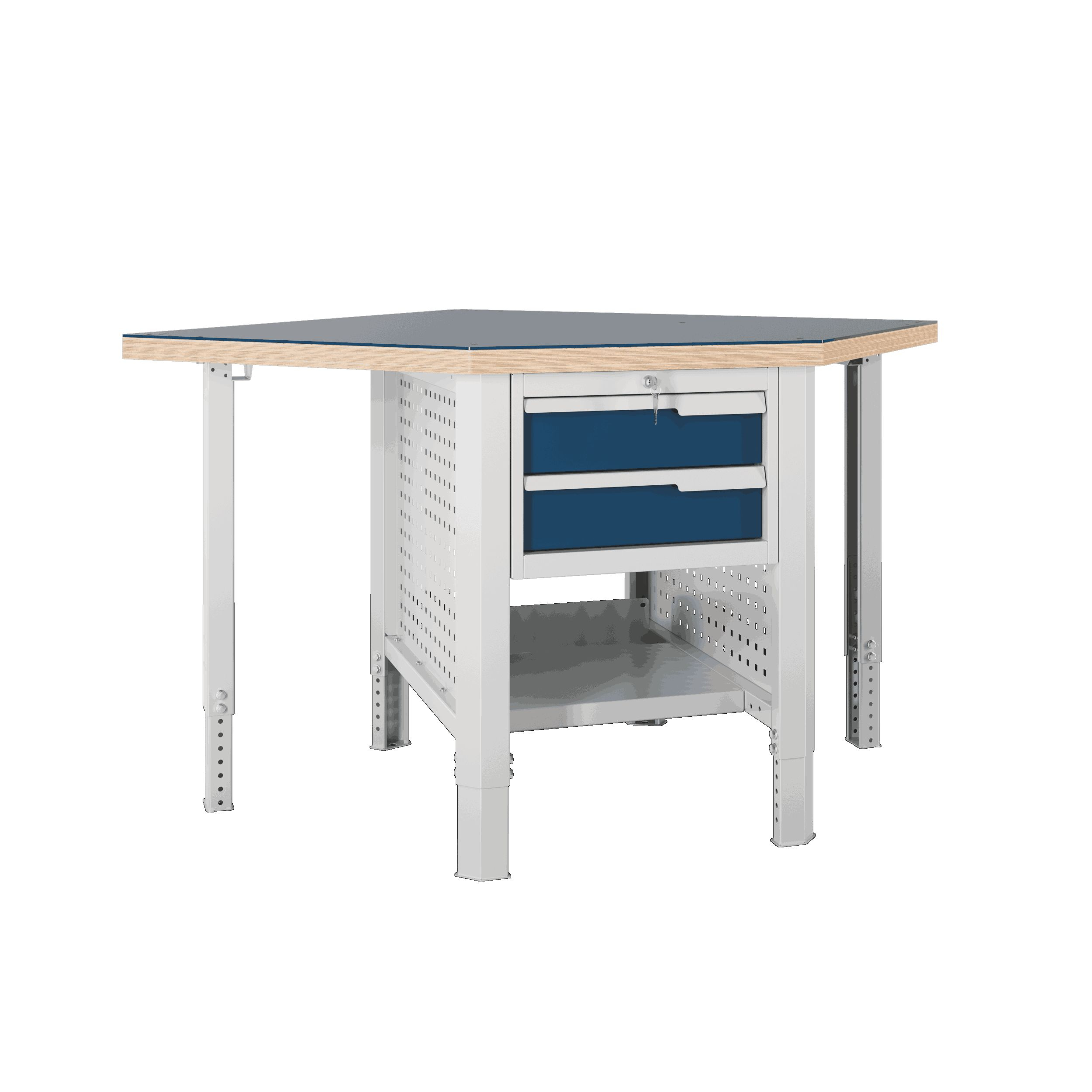 Блок стыковки углового верстака серии Constructor U5 разработан для обеспечения максимальной гибкости и надежности, учитывая конструктивные характеристики рабочего помещения.