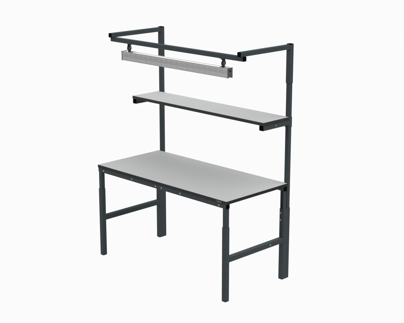 В комплект стола входит стол серии 41.Б, комплект задних стоек, верхняя полка шириной 300 мм, комплект крепления верхнего освещения и светодиодный светильник.