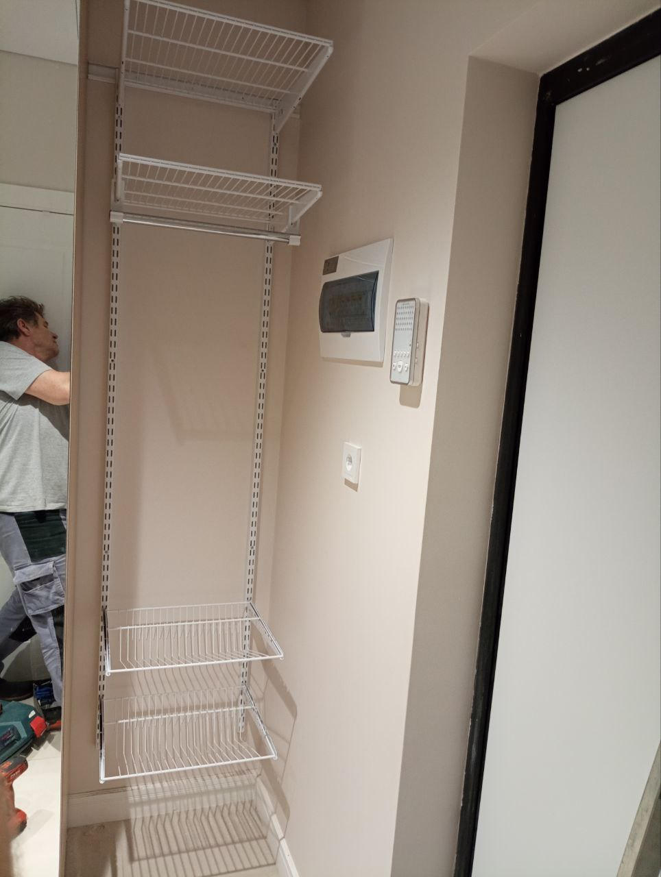Монтаж выполнен без повреждения отделки стен и пола прихожей. Все крепления скрыты внутри конструкции, что сохраняет эстетику интерьера.