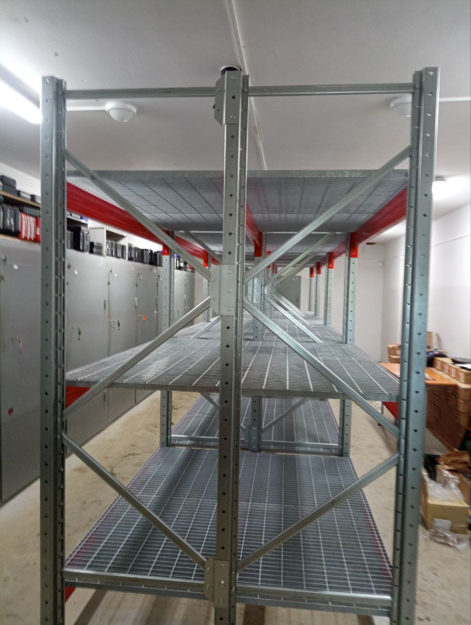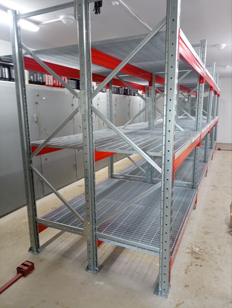 Завершён монтаж фронтального стеллажного комплекса с полками — многофункциональной системы хранения, сочетающей в себе преимущества классических паллетных стеллажей и стеллажей с полками.