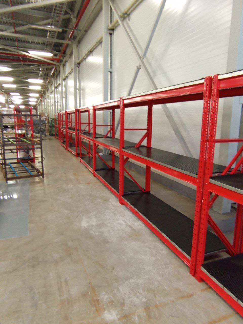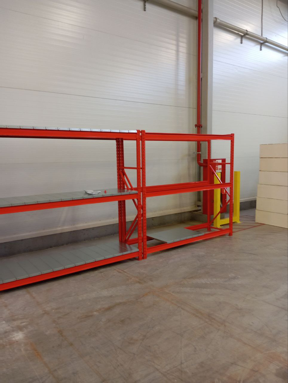 Установлен металлический стеллаж для хранения брака MS Pro (RAL 3028) с дополнительным покрытием